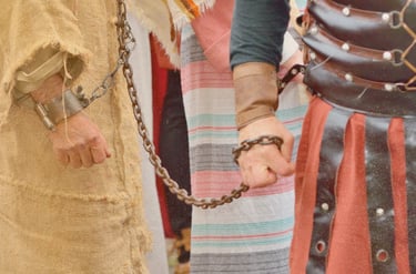 They led him to the place where the princes of the priests were seated, who cried out, "Let him die! Let him die!" and turned their faces away in disgust. Then they led him into the inner court of the guard, where there were no soldiers, but slaves, constables, and rabbles—in short, the dregs of the people.